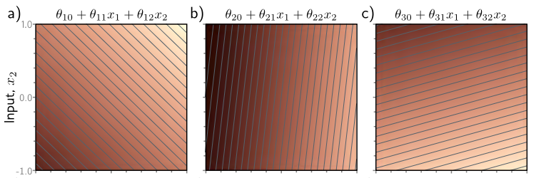 where $\phi_i$ is the ‘weight’ passed into each activation layer and the $\theta_j$ params are the coefficients of the linear functions themselves.