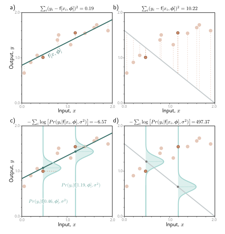 $$Pr(y|f[x, \phi], \sigma^2) = \frac{1}{\sqrt{2\pi\sigma^2}}exp[-\frac{(y-f[x, \phi])^2}{2\sigma^2}]$$