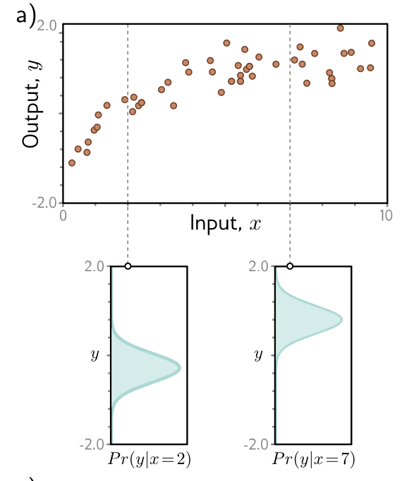 1. The model as predicting a probability distribution instead of a point estimate of ‘y’ value.
