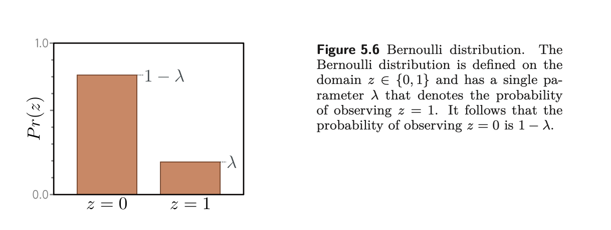 $$ Pr(y|\lambda) = \begin{cases} \lambda & y = 1 \ 1 - \lambda & y = 0 \end{cases} $$