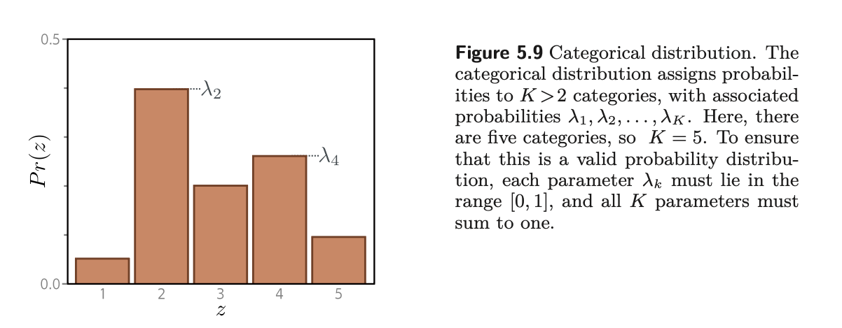 This has K parameters, $\lambda_1, \lambda_2…\lambda_K$ that determines the probability of each category.